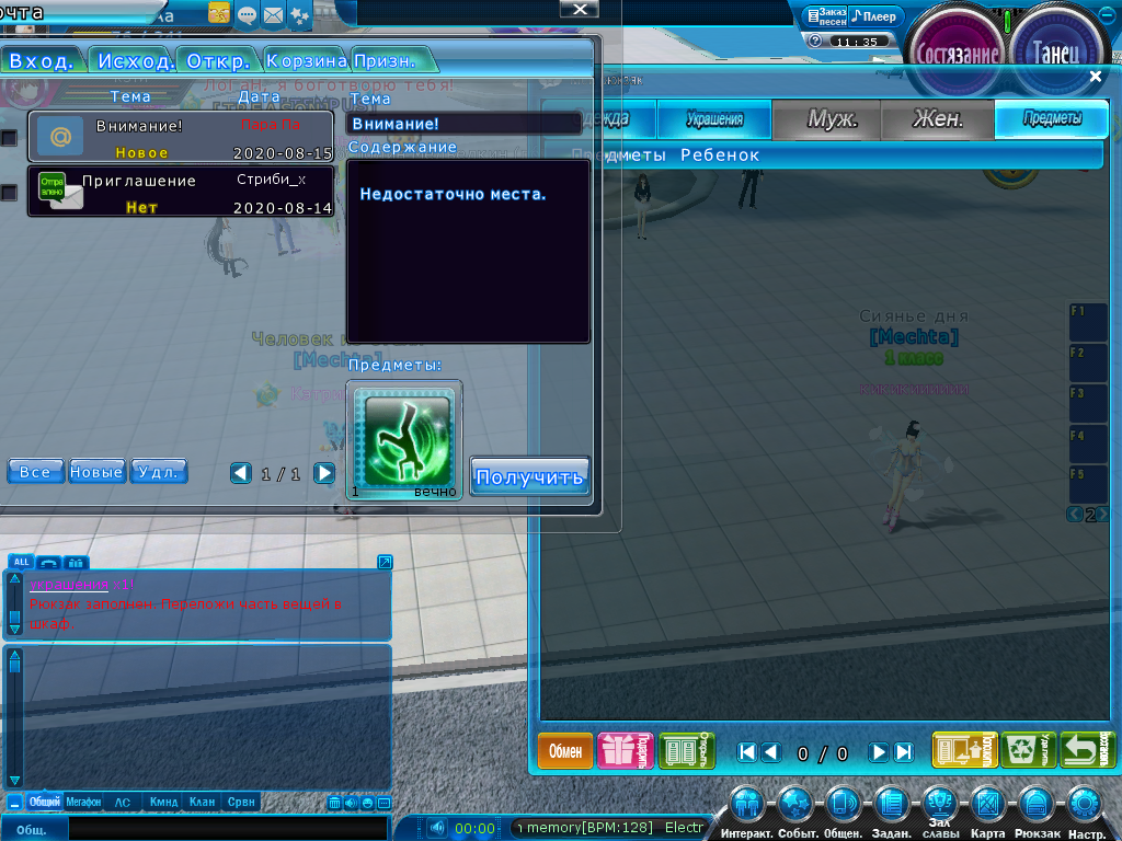 Shotina, добрый день. Освободите место в рюкзаке, переместив предметы в шкаф.