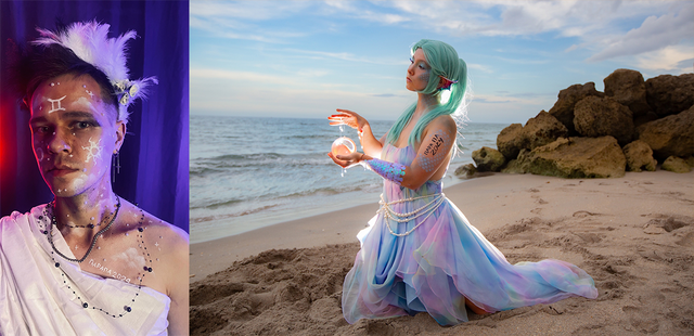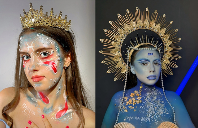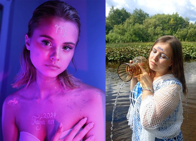 Что это за дева у вас ? На лбу нарисовала знак девы и все. Полная ерунда и никакой идеи! Водолей с кувшином - Хорошая девушка! попытка закосплеить водолея удалась на твердую четверку !