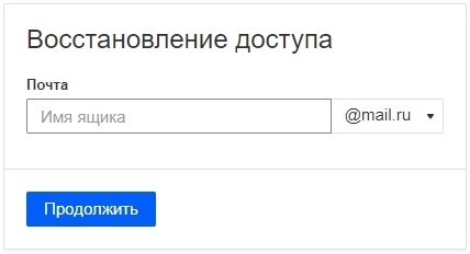 2. Нажмите на кнопку «Забыли пароль?», впишите адрес почтового ящика, который хотите восстановить, и нажмите кнопку «Продолжить»: