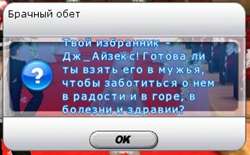 После принятия предложения у обоих появится окно с небольшим советом и титулы «Девушка: ХХХ/Парень: ХХХ» над головой.