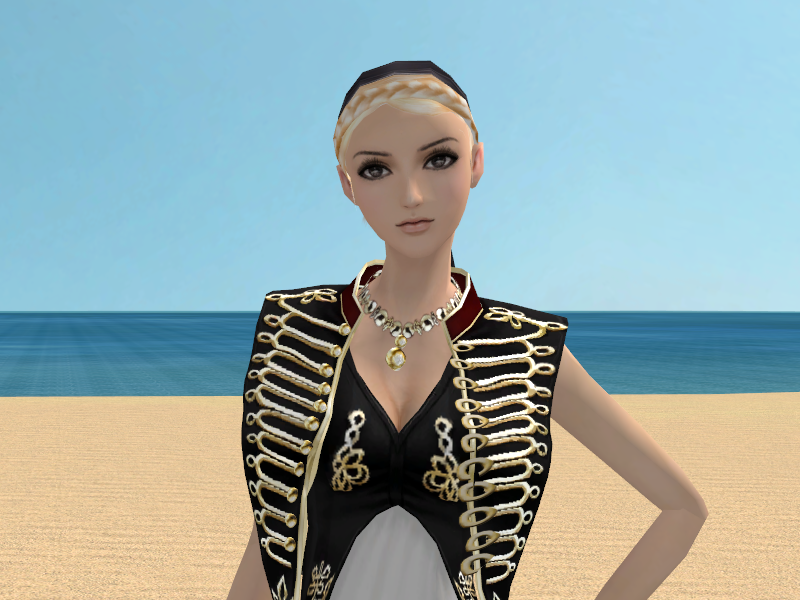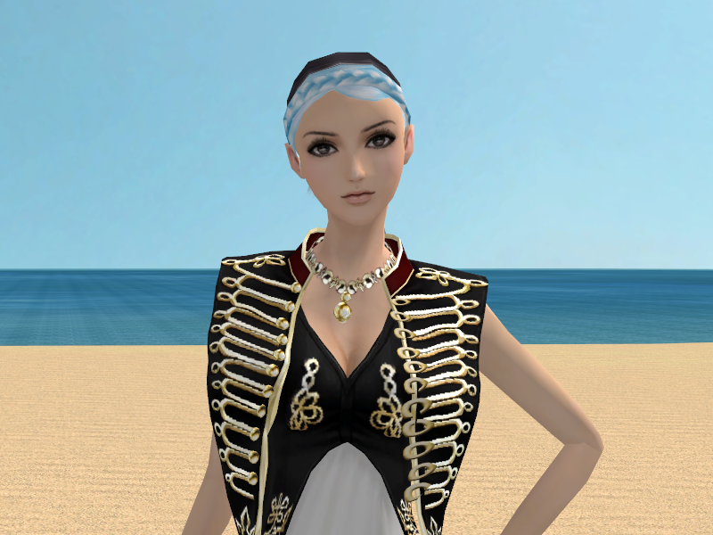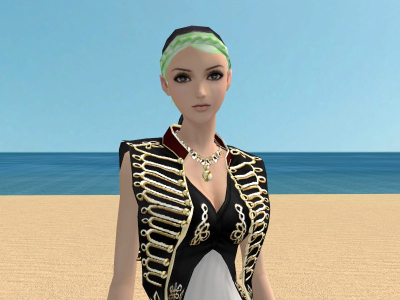 Волосы заплетены в дреды и собраны в хвост, отдаленно напоминающий птичий. 400000 очков
