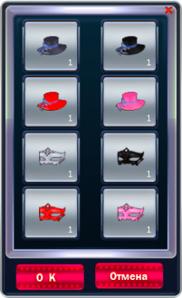 Внутри ты найдешь полумаску и шляпу "Анжен" одного из четырех цветов на выбор.