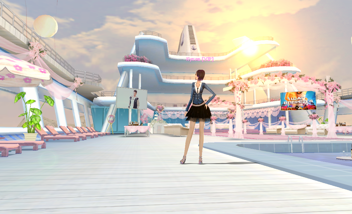 В назначенный день и час все соберутся в специальной локации - роскошном круизном лайнере. Состоится красивая и зрелищная церемония бракосочетания и фейерверк, все гости получат небольшие подарки от имени молодоженов.