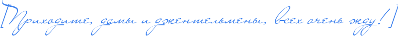 ~ ВНИМАНИЕ, очень важно- на событии просьба обращаться ко всем на "Вы", приглашать дам на танец, общаться по правилам этикета, со всеми знакомится, джентельменам делать элегантные интерактивы, дамам, разумеется, тоже и т.п.