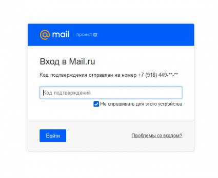 В случае возникновения проблем при использовании двухфакторной аутентификации необходимо обратиться в службу поддержки Почты@Mail.Ru.