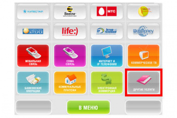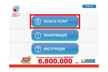 - Выберите в главном меню терминала «ОПЛАТА УСЛУГ»: